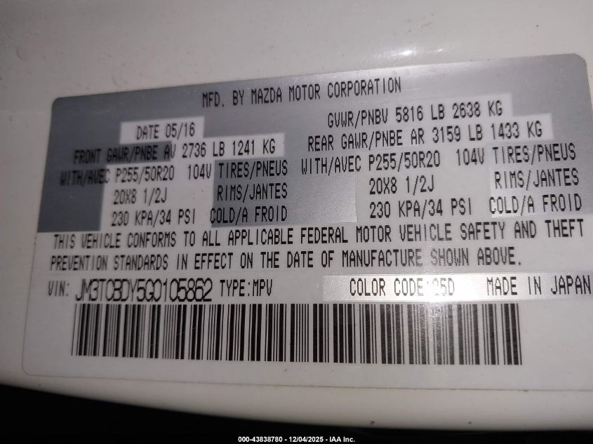 Цвет БелыйЦилиндры 4Привод Полный приводVIN JM3TCBDY5G0105862Состояние Заводится и едет (проверено)Повреждения Передняя или задняя AutoRIA