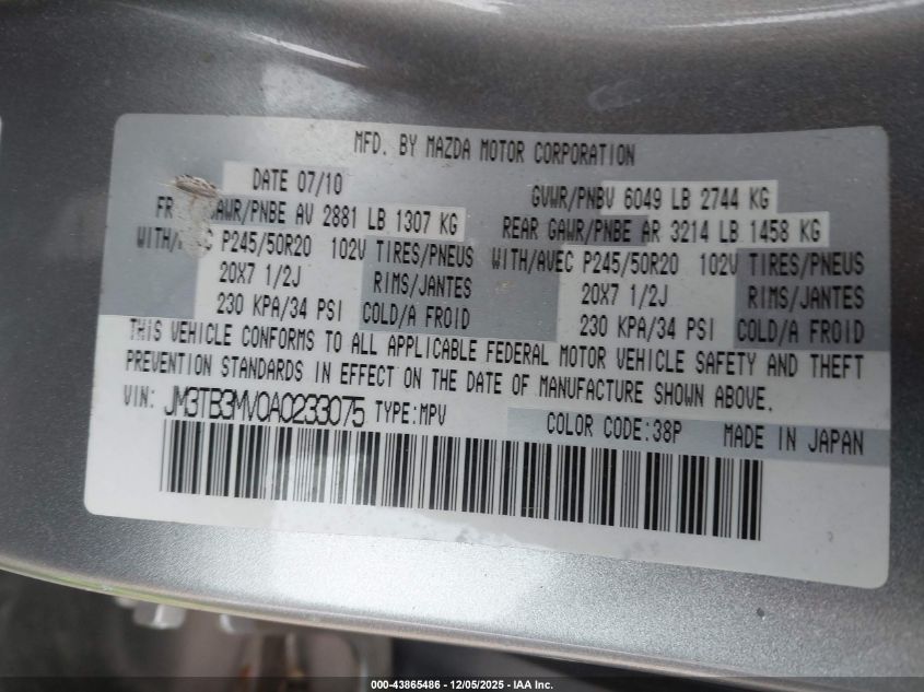 2010 MAZDA CX-9 2010 року Бензин, 3.7, Полный привод, vin - JM3TB3MV0A0233075 из США