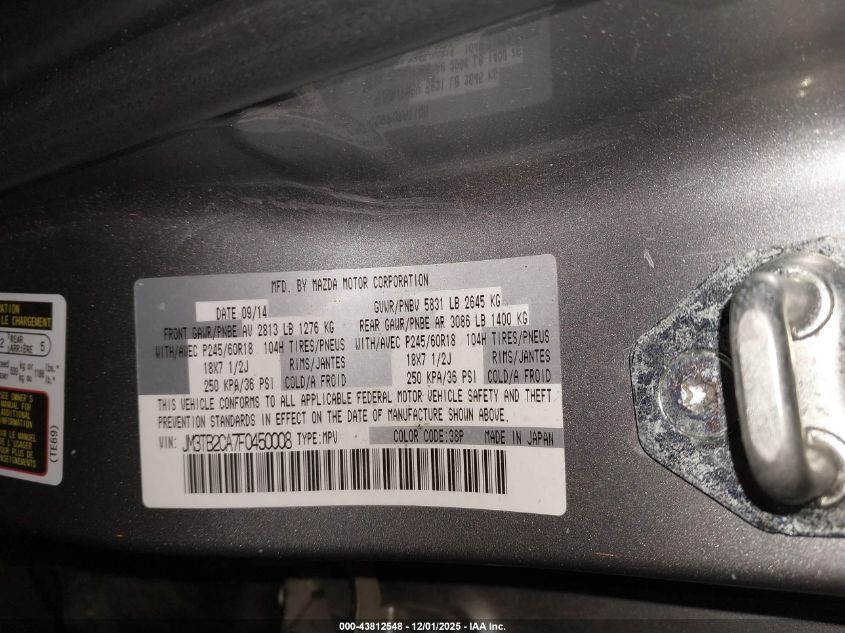 2015 MAZDA CX-9 2015 року Бензин, 3.7, Передний привод, vin - JM3TB2CA7F0450008 из США