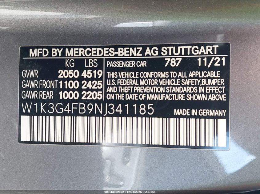 2022 MERCEDES-BENZ A-CLASS 2022 року Бензин, 2.0, Полный привод, vin - W1K3G4FB9NJ341185 из США