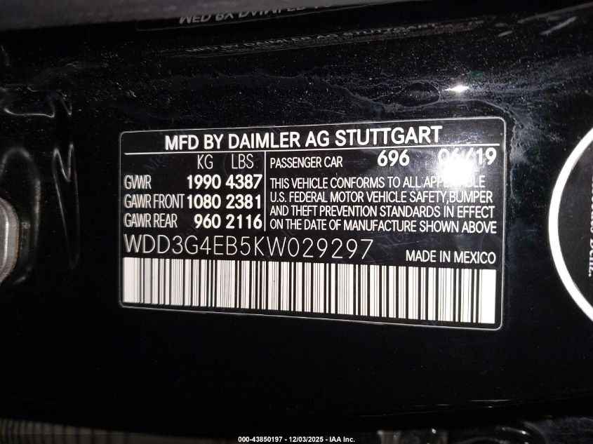 Цвет ЧерныйЦилиндры 4Привод Передний приводVIN WDD3G4EB5KW029297Состояние Заводится и едет (проверено)Повреждения Передняя или задняя AutoRIA