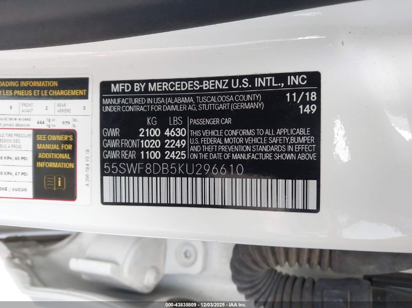 2019 MERCEDES-BENZ C-CLASS 2019 року Бензин, 2.0, Задний привод, vin - 55SWF8DB5KU296610 из США