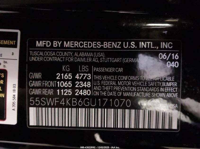 2016 MERCEDES-BENZ C-CLASS 2016 року Бензин, 2.0, Полный привод, vin - 55SWF4KB6GU171070 из США