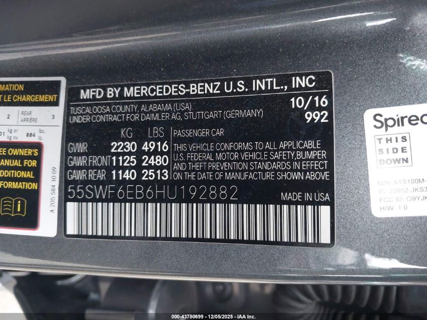 2017 MERCEDES-BENZ C-CLASS 2017 року Бензин, 3.0, Полный привод, vin - 55SWF6EB6HU192882 из США