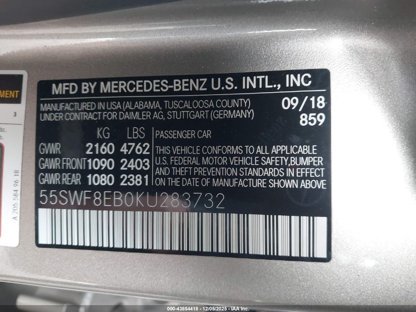2019 MERCEDES-BENZ C-CLASS 2019 року Бензин, 2.0, Полный привод, vin - 55SWF8EB0KU283732 из США