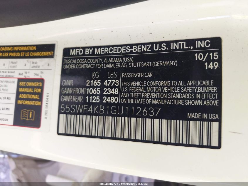 2016 MERCEDES-BENZ C-CLASS 2016 року Бензин, 2.0, Полный привод, vin - 55SWF4KB1GU112637 из США
