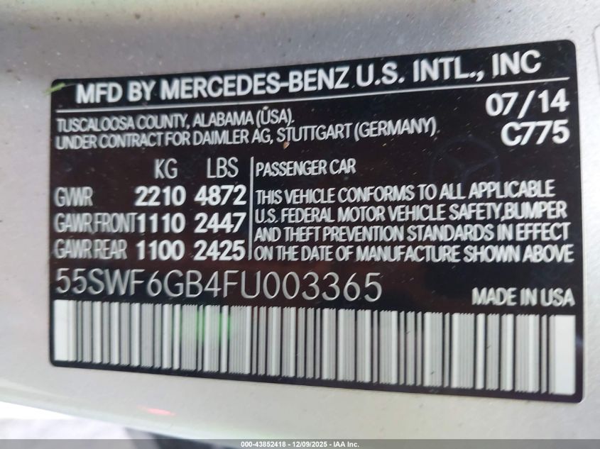 2015 MERCEDES-BENZ C-CLASS 2015 року Бензин, 3.0, Полный привод, vin - 55SWF6GB4FU003365 из США