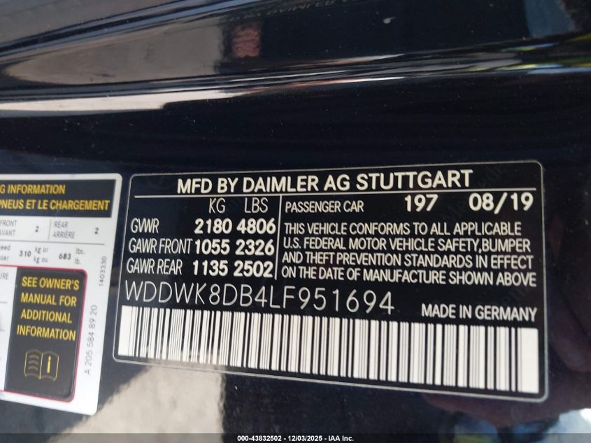 Цвет ЧерныйЦилиндры 4Привод Задний приводVIN WDDWK8DB4LF951694Состояние Заводится и едет (проверено)Повреждения Передняя или задняя AutoRIA