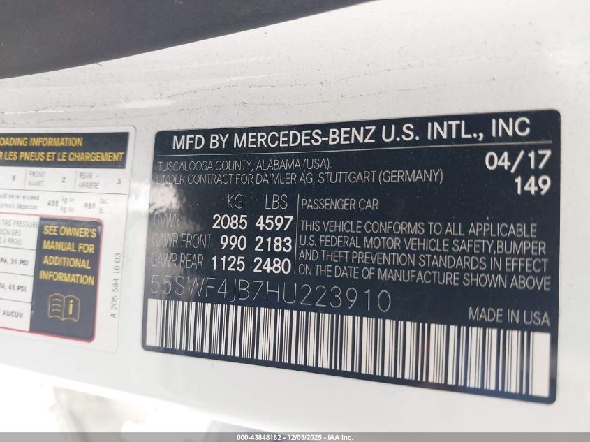 2017 MERCEDES-BENZ C-CLASS 2017 року Бензин, 2.0, Задний привод, vin - 55SWF4JB7HU223910 из США