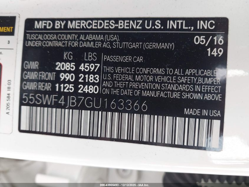 2016 MERCEDES-BENZ C-CLASS 2016 року Бензин, 2.0, Задний привод, vin - 55SWF4JB7GU163366 из США