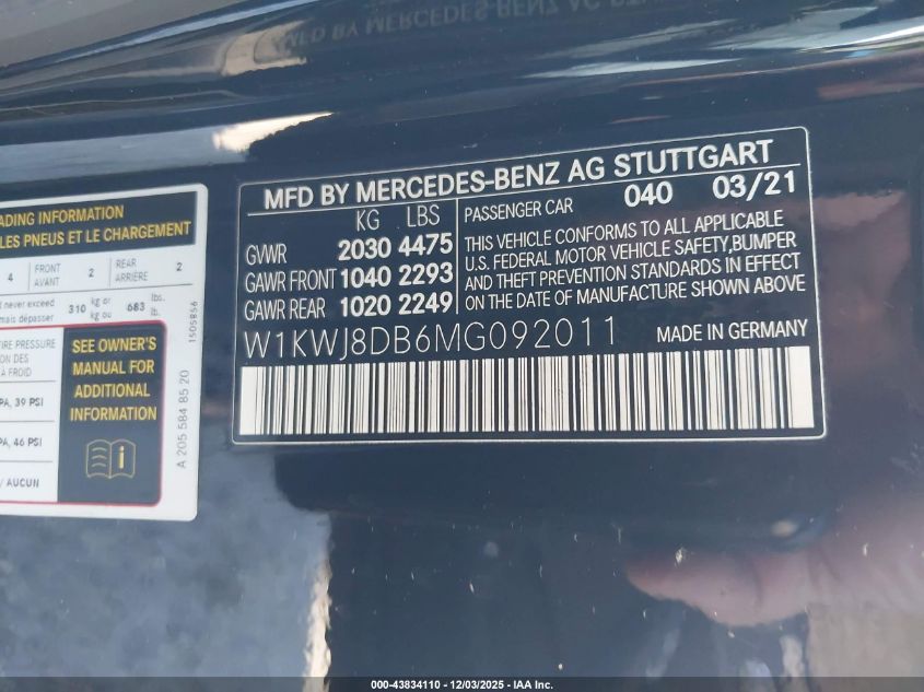 2021 MERCEDES-BENZ C-CLASS 2021 року Бензин, 2.0, Задний привод, vin - W1KWJ8DB6MG092011 из США