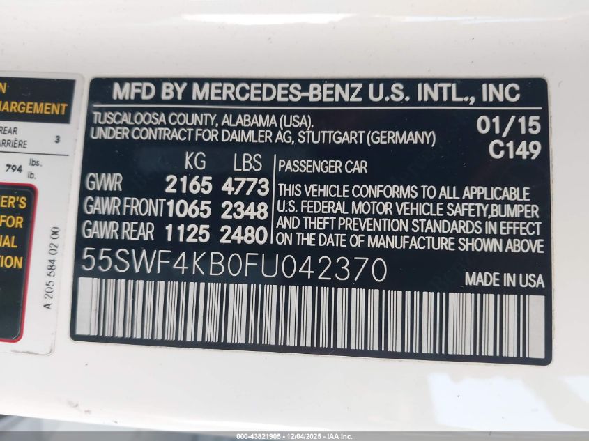 2015 MERCEDES-BENZ C-CLASS 2015 року Бензин, 2.0, Полный привод, vin - 55SWF4KB0FU042370 из США