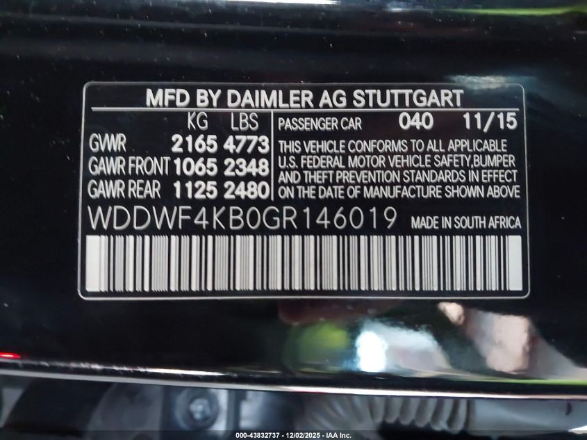 2016 MERCEDES-BENZ C-CLASS 2016 року Бензин, 2.0, Полный привод, vin - WDDWF4KB0GR146019 из США