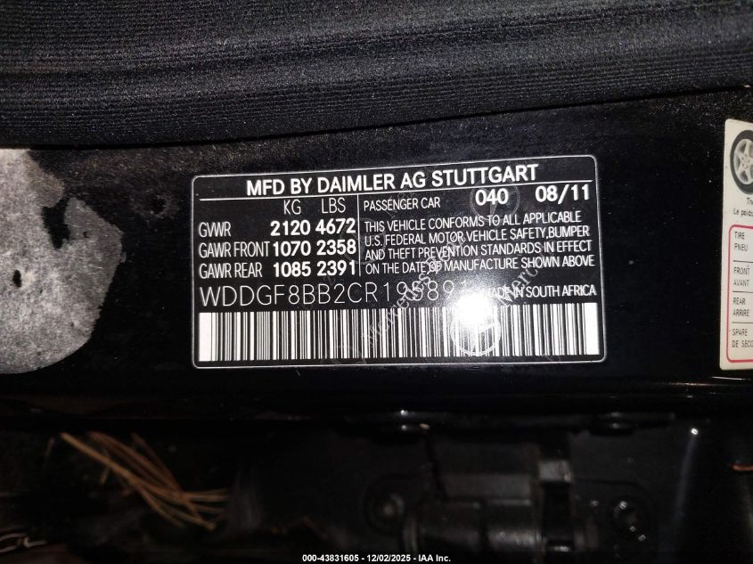 Цвет ЧерныйЦилиндры 6Привод Полный приводVIN WDDGF8BB2CR195891Состояние СтационарноПовреждения Передняя леваяДата аукциона 2025-12-16 AutoRIA