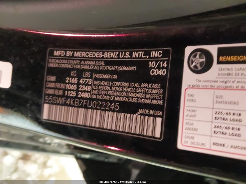 2015 MERCEDES-BENZ C-CLASS 2015 року Бензин, 2.0, Полный привод, vin - 55SWF4KB7FU022245 из США