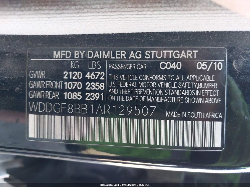 2010 MERCEDES-BENZ C-CLASS 2010 року Бензин, 3.0, Полный привод, vin - WDDGF8BB1AR129507 из США