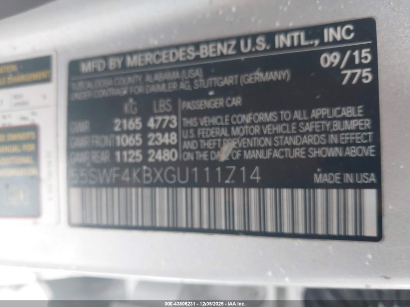 2016 MERCEDES-BENZ C-CLASS 2016 року Бензин, 2.0, Полный привод, vin - 55SWF4KBXGU111714 из США
