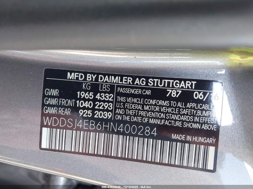 2017 MERCEDES-BENZ CLA-CLASS 2017 року Бензин, 2.0, Передний привод, vin - WDDSJ4EB6HN400284 из США