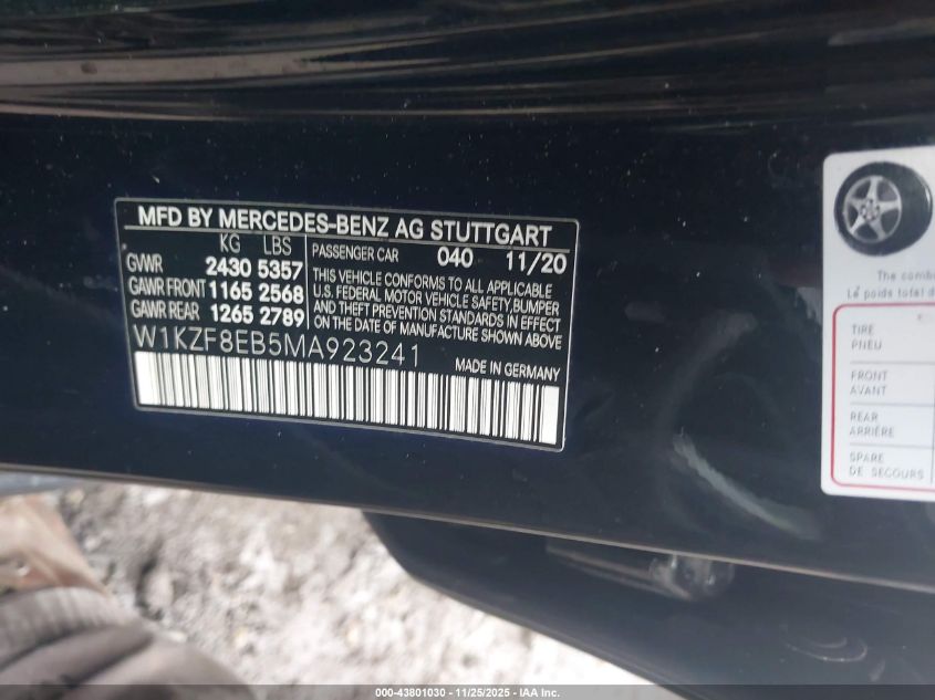 2021 MERCEDES-BENZ E-CLASS 2021 року Бензин, 2.0, Полный привод, vin - W1KZF8EB5MA923241 из США