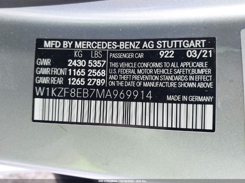 2021 MERCEDES-BENZ E-CLASS 2021 року Бензин, 2.0, Полный привод, vin - W1KZF8EB7MA969914 из США