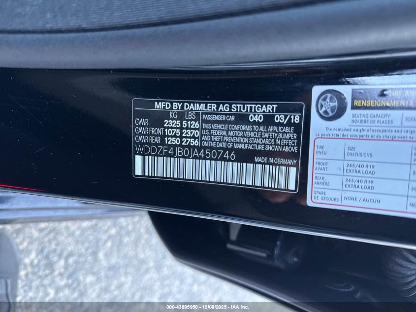 2018 MERCEDES-BENZ E-CLASS 2018 року Бензин, 2.0, Задний привод, vin - WDDZF4JB0JA450746 из США