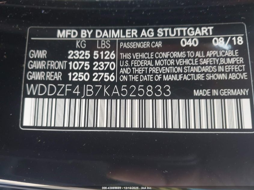 2019 MERCEDES-BENZ E-CLASS 2019 року Бензин, 2.0, Задний привод, vin - WDDZF4JB7KA525833 из США