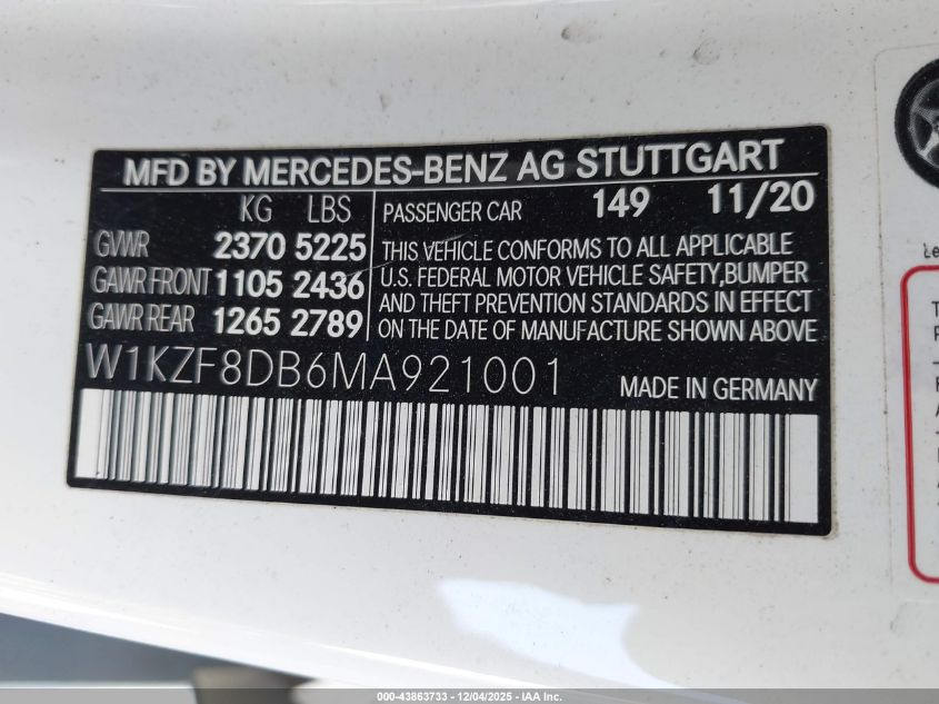 Цвет БелыйЦилиндры 4Привод Задний приводVIN W1KZF8DB6MA921001Состояние СтационарноПовреждения Передняя или задняя AutoRIA