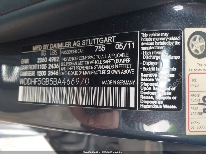 2011 MERCEDES-BENZ E-CLASS 2011 року Бензин, 3.5, Задний привод, vin - WDDHF5GB5BA466970 из США