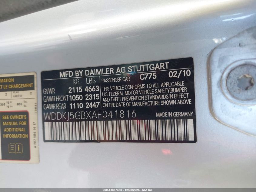 2010 MERCEDES-BENZ E-CLASS 2010 року Бензин, 3.5, Задний привод, vin - WDDKJ5GBXAF041816 из США