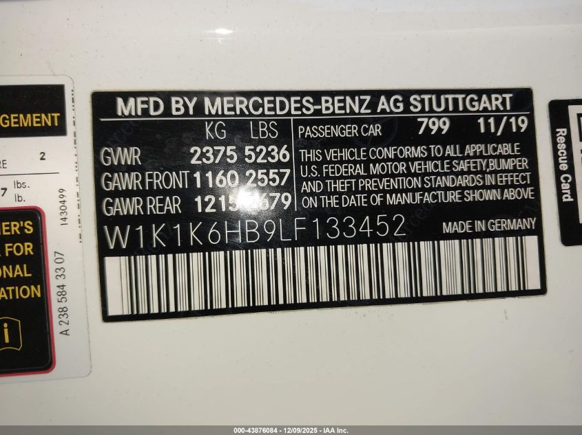 2020 MERCEDES-BENZ E-CLASS 2020 року Бензин, 3.0, Задний привод, vin - W1K1K6HB9LF133452 из США