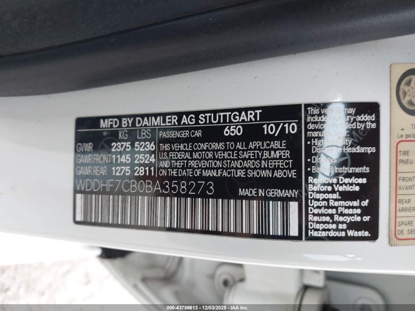 Цвет БелыйЦилиндры 8Привод Задний приводVIN WDDHF7CB0BA358273Состояние СтационарноПовреждения Левая сторонаДата аукциона 2025-12-15 AutoRIA