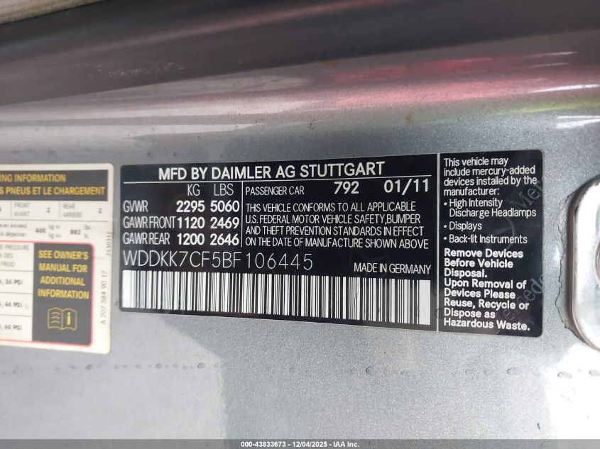 2011 MERCEDES-BENZ E-CLASS 2011 року Бензин, 5.5, Задний привод, vin - WDDKK7CF5BF106445 из США