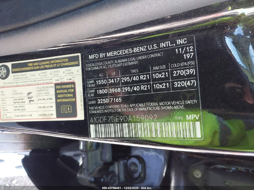 2013 MERCEDES-BENZ GL-CLASS 450 4MATIC