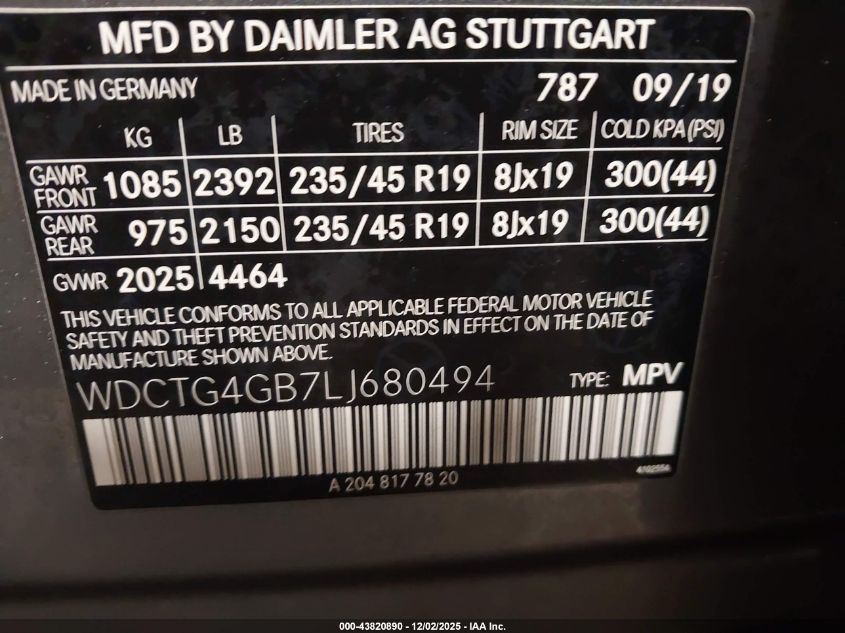 2020 MERCEDES-BENZ GLA-CLASS 2020 року Бензин, 2.0, Полный привод, vin - WDCTG4GB7LJ680494 из США