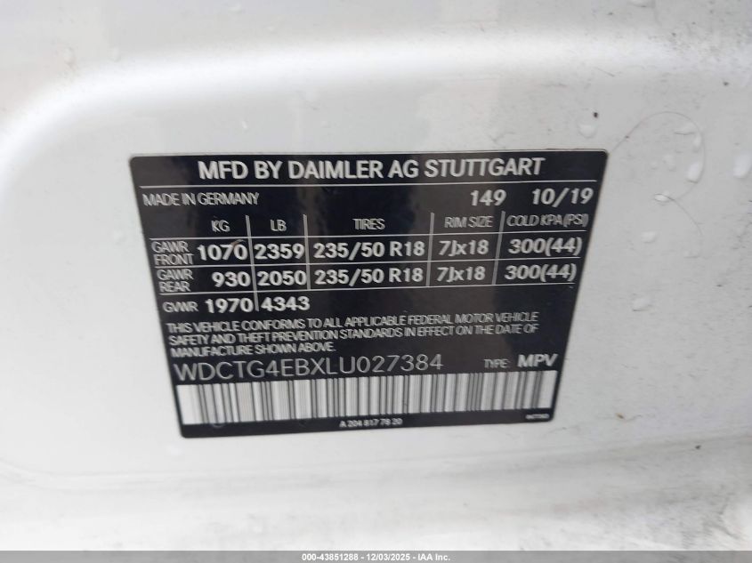 2020 MERCEDES-BENZ GLA-CLASS 2020 року Бензин, 2.0, Передний привод, vin - WDCTG4EBXLU027384 из США