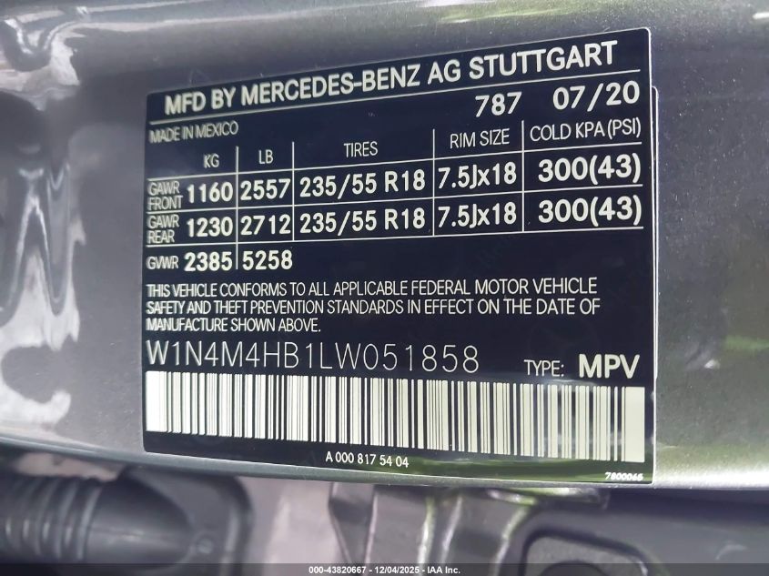2020 MERCEDES-BENZ GLB-CLASS 250 4MATIC