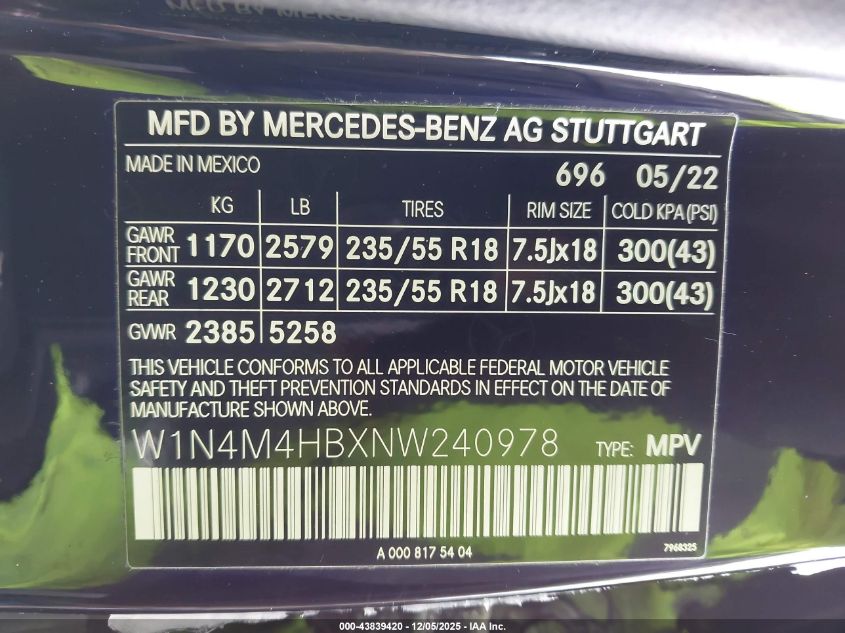 2022 MERCEDES-BENZ GLB-CLASS 2022 року Бензин, 2.0, Полный привод, vin - W1N4M4HBXNW240978 из США