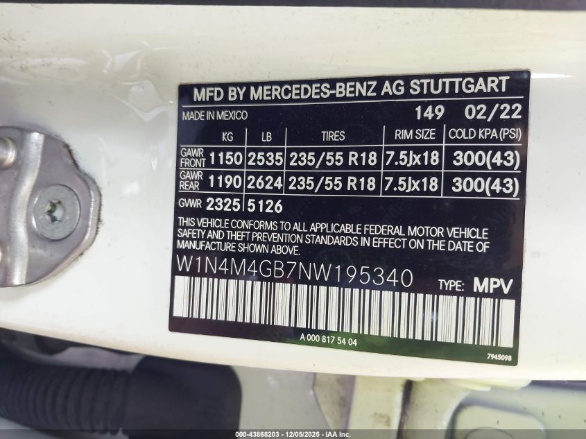 2022 MERCEDES-BENZ GLB-CLASS 2022 року Бензин, 2.0, Передний привод, vin - W1N4M4GB7NW195340 из США