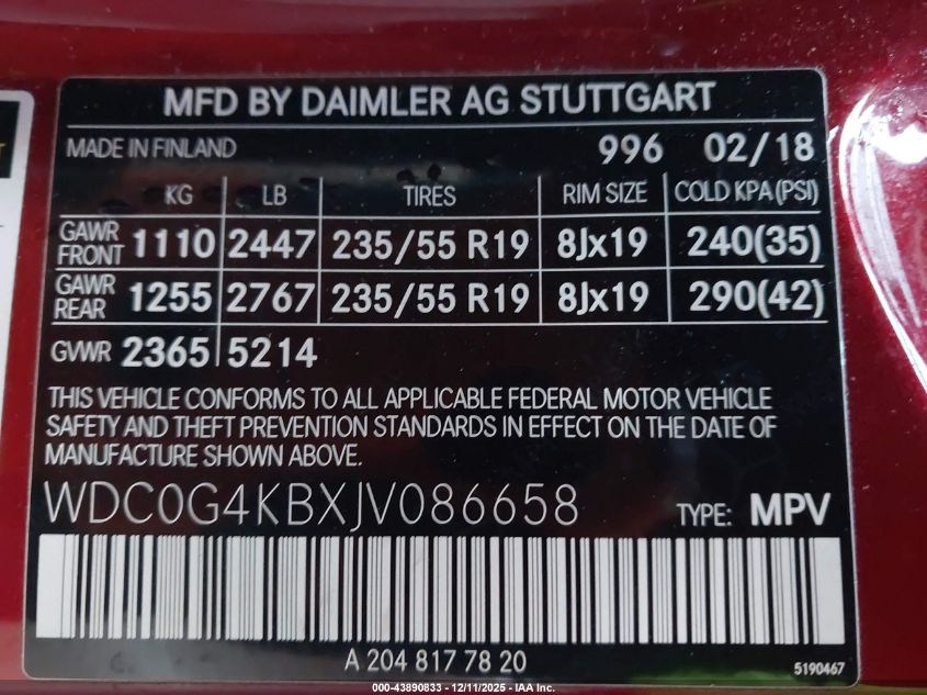 Цвет КрасныйЦилиндры 4Привод Полный приводVIN WDC0G4KBXJV086658Состояние Заводится и едет (проверено)Повреждения Передняя или задняя AutoRIA