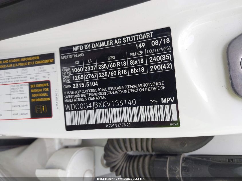 Цвет БелыйЦилиндры 4VIN WDC0G4JBXKV136140Состояние Заводится и едет (проверено)Повреждения Передняя или задняя AutoRIA