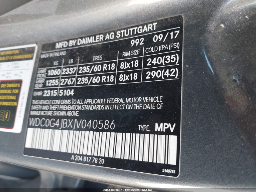 Цвет СерыйЦилиндры 4VIN WDC0G4JBXJV040586Состояние СтационарноПовреждения Передняя и задняя AutoRIA