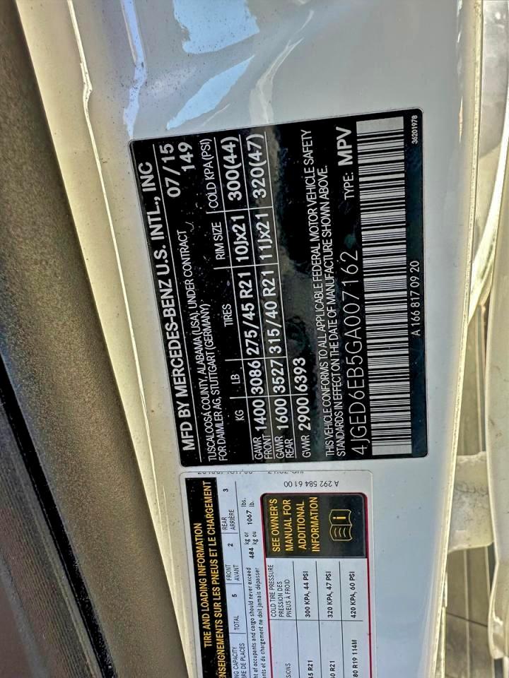 2016 MERCEDES-BENZ GLE-CLASS 2016 року Бензин, 3.0, Полный привод, vin - 4JGED6EB5GA007162 из США