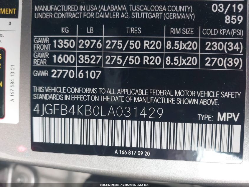 2020 MERCEDES-BENZ GLE-CLASS 2020 року Бензин, 2.0, Полный привод, vin - 4JGFB4KB0LA031429 из США