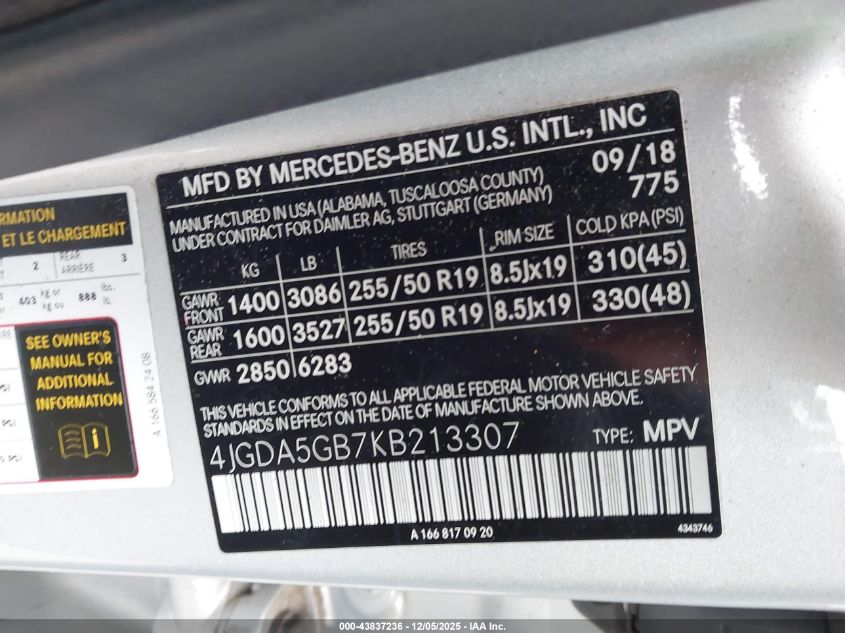2019 MERCEDES-BENZ GLE-CLASS 2019 року Бензин, 3.0, Полный привод, vin - 4JGDA5GB7KB213307 из США