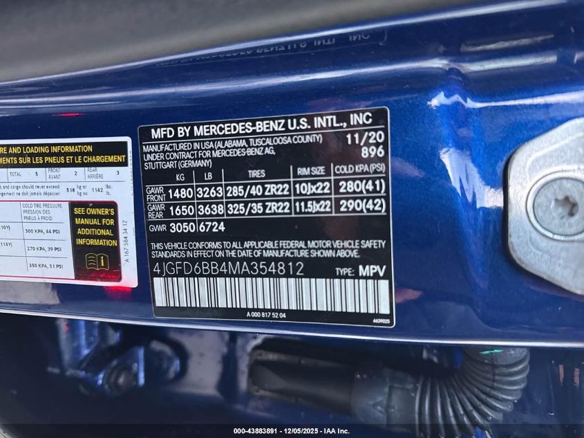 2021 MERCEDES-BENZ GLE-CLASS 2021 року Бензин, 3.0, Полный привод, vin - 4JGFD6BB4MA354812 из США