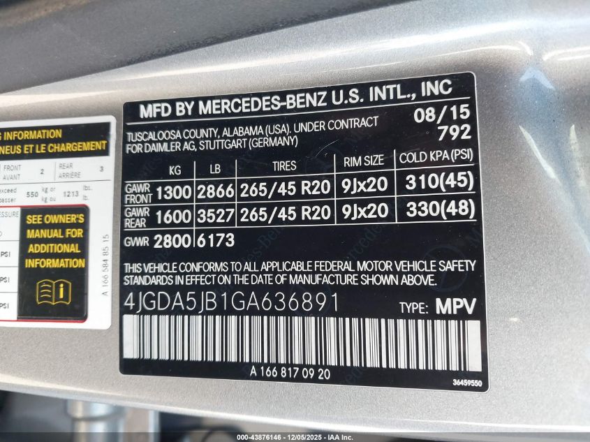 2016 MERCEDES-BENZ GLE-CLASS 2016 року Бензин, 3.5, , vin - 4JGDA5JB1GA636891 из США