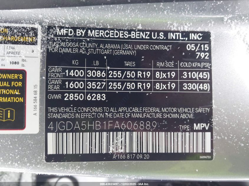 2015 MERCEDES-BENZ M-CLASS 2015 року Бензин, 3.5, Полный привод, vin - 4JGDA5HB1FA606889 из США