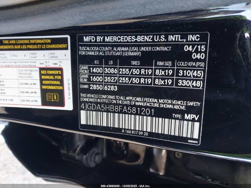 2015 MERCEDES-BENZ M-CLASS 400 4MATIC