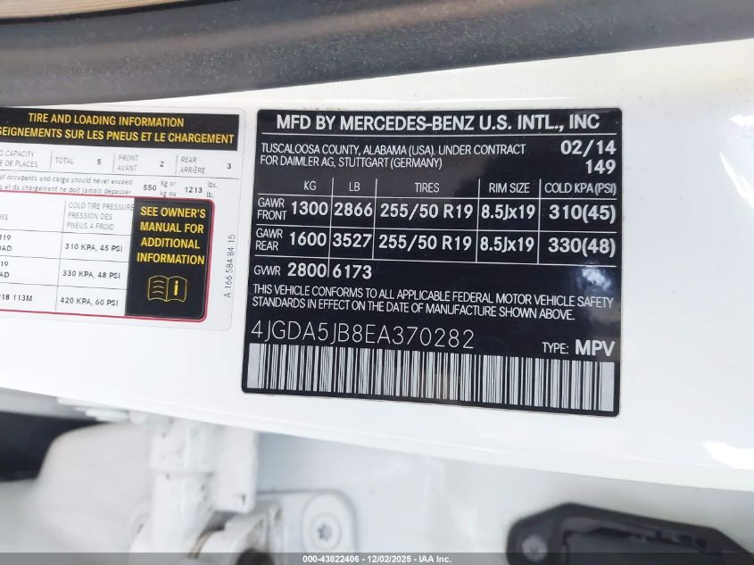 2014 MERCEDES-BENZ M-CLASS 2014 року Бензин, 3.5, , vin - 4JGDA5JB8EA370282 из США