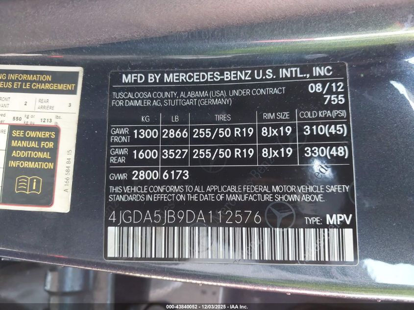 2013 MERCEDES-BENZ M-CLASS 2013 року Бензин, 3.5, , vin - 4JGDA5JB9DA112576 из США